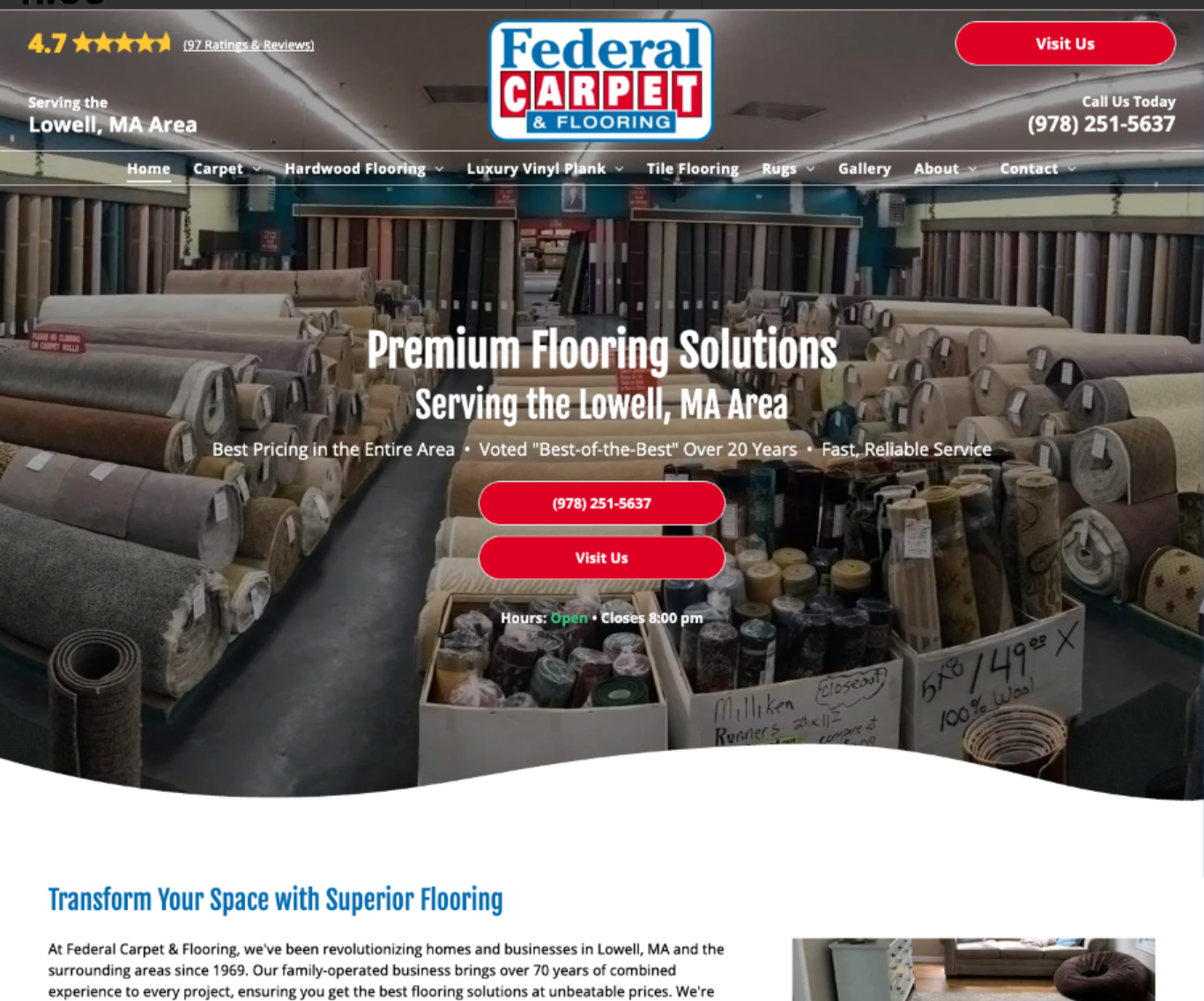 The examples below are each representative of a Hibu One Smart Site built for an actual Hibu client. They are intended to show the range and variety of Smart Sites we build. Your actual site will be unique based on website design best practices, your preferences, and the information and content you provide to us.